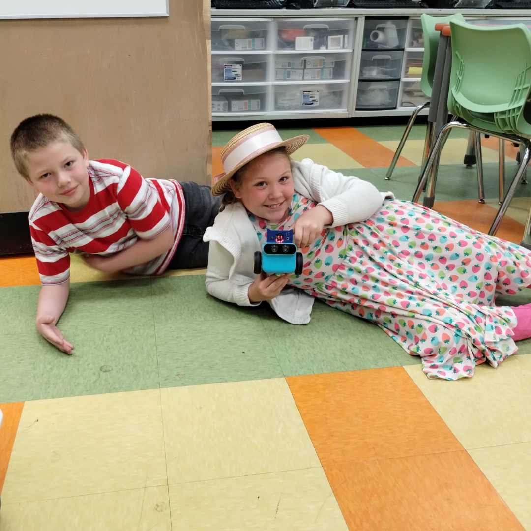 Side view of ELECFREAKS TPBot Edu microbit car with customizable stickers, designed for STEM robotics education and kids programming