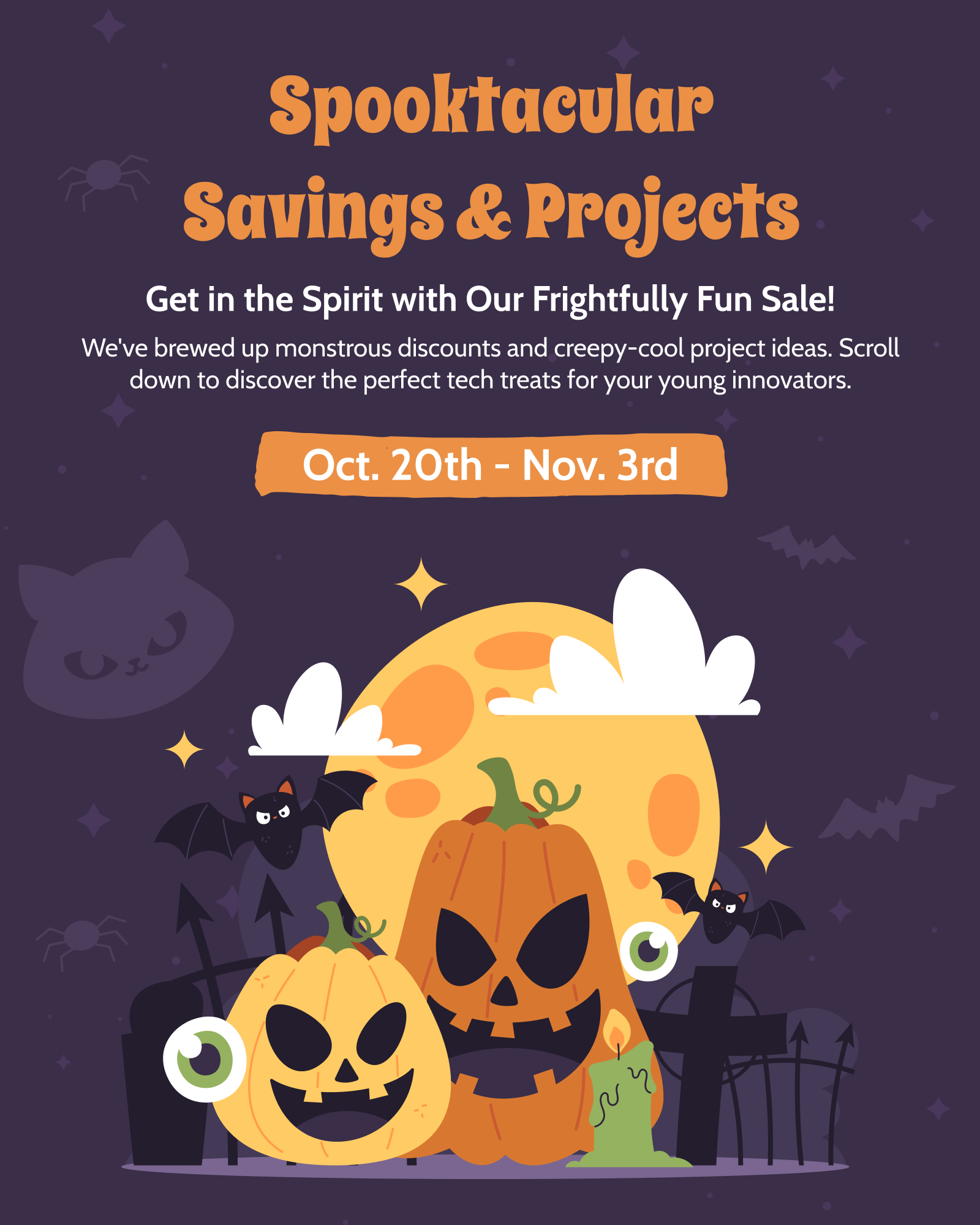 Our Halloween sale runs from to , 2025. The discount code will expire at 6 PM (PDT) on the final day, so be sure to place your order in time!