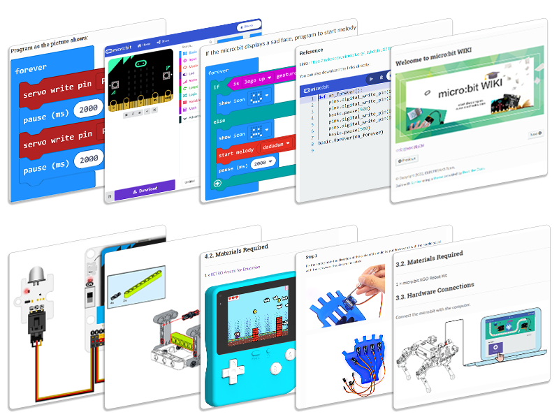 Casi todos los kits tienen un wiki detallado con más de 400 proyectos, que ayudan a profesores y alumnos a enseñar y aprender.