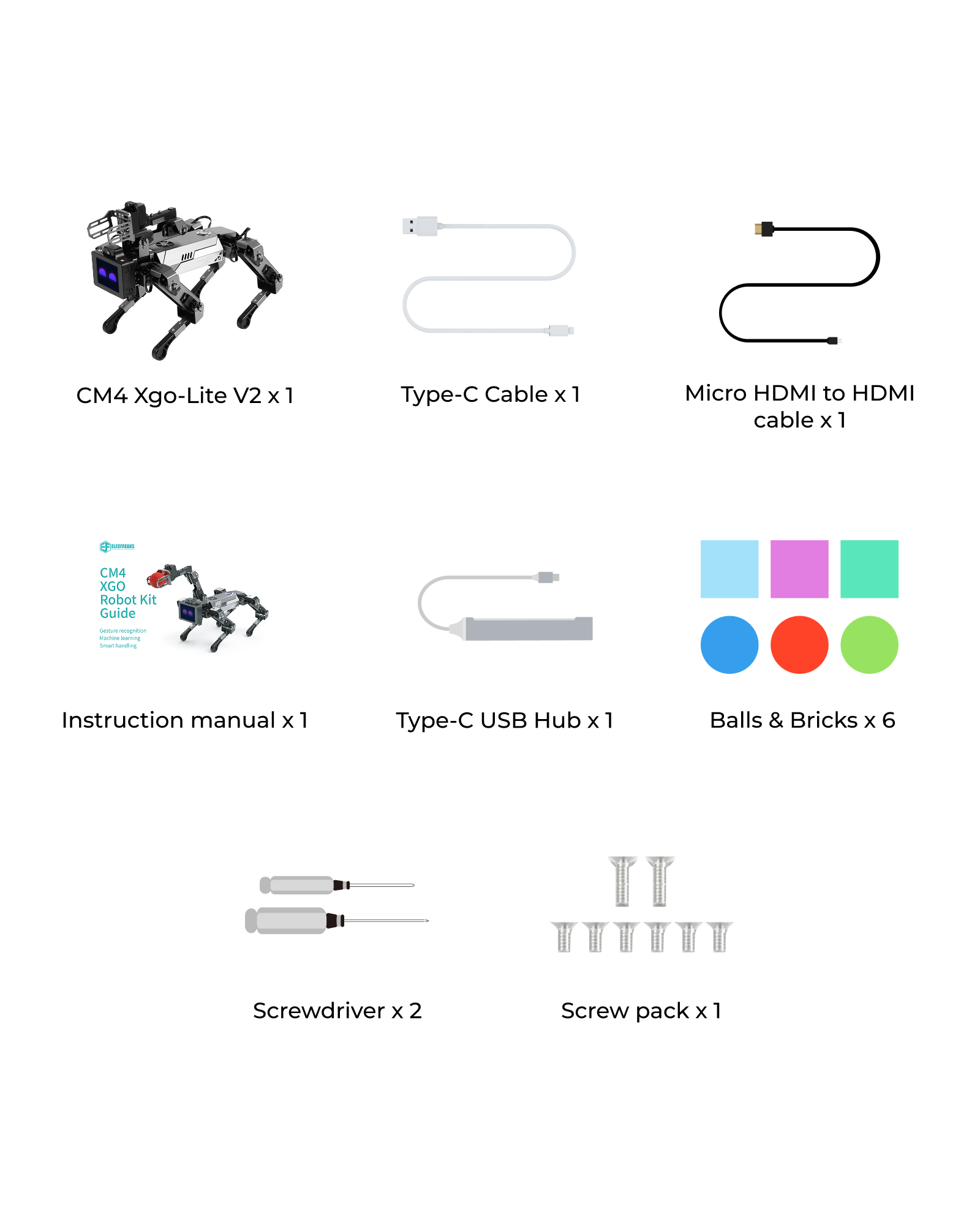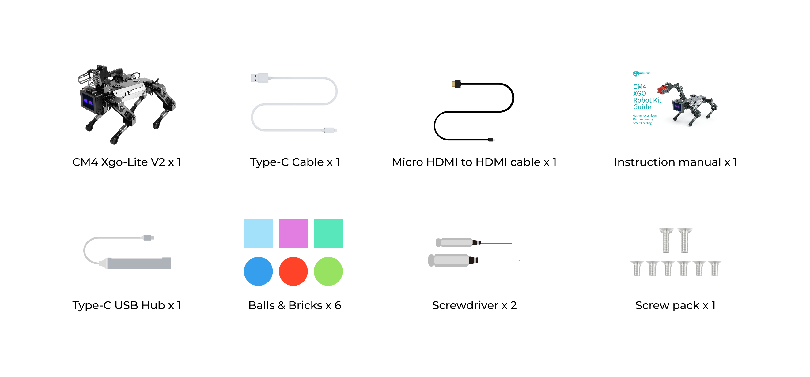 ELECFREAKS CM4 XGO Robot Dog Kit V2 for Raspberry Pi is powered by a Raspberry Pi Compute Module 4 (CM4) which boasts a Quad-Core Cortex-A72 CPU running at 1.5GHz. It offers wireless connectivity with dual-band 2.4GHz/5GHz Wi-Fi and Bluetooth 5.0 BLE. With 4GB of RAM for multitasking and 32GB of Micro SD card storage for the operating system, XGO-mini V2 boasts a fast boot-up time and a smooth overall user experience.