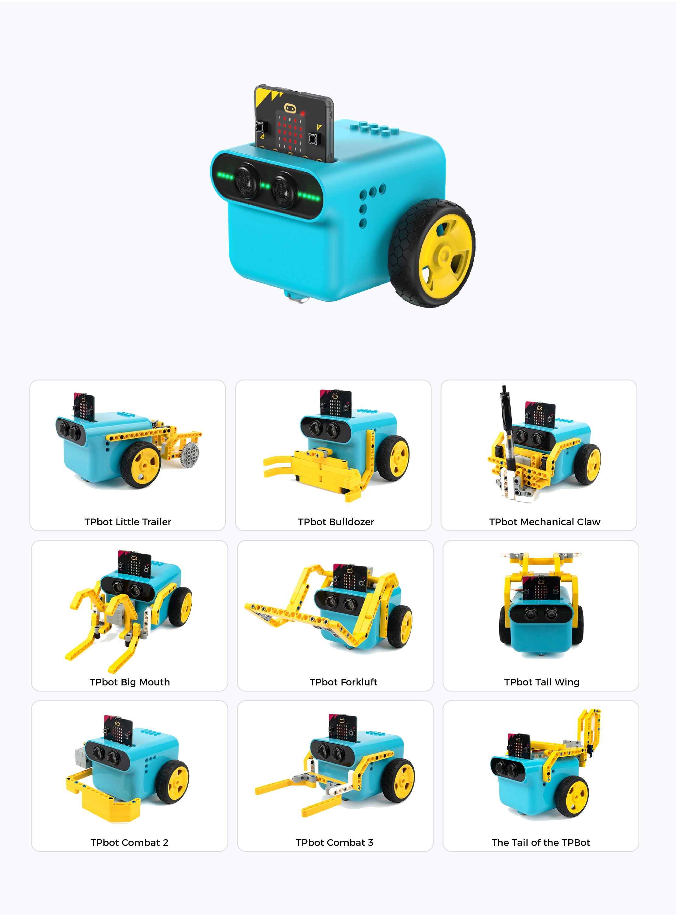 The TPBot Science and Technology Blocks Pack contains 180 multi-functional blocks and a Geekservo, designed to seamlessly integrate with your TPBot Car, TPBot EDU Car, Smart Cutebot, Smart Cutebot Pro, and other compatible kits. Included in the pack are 12 specially designed case units that fit both the TPBot and TPBot EDU Cars, offering versatile options for creative construction.