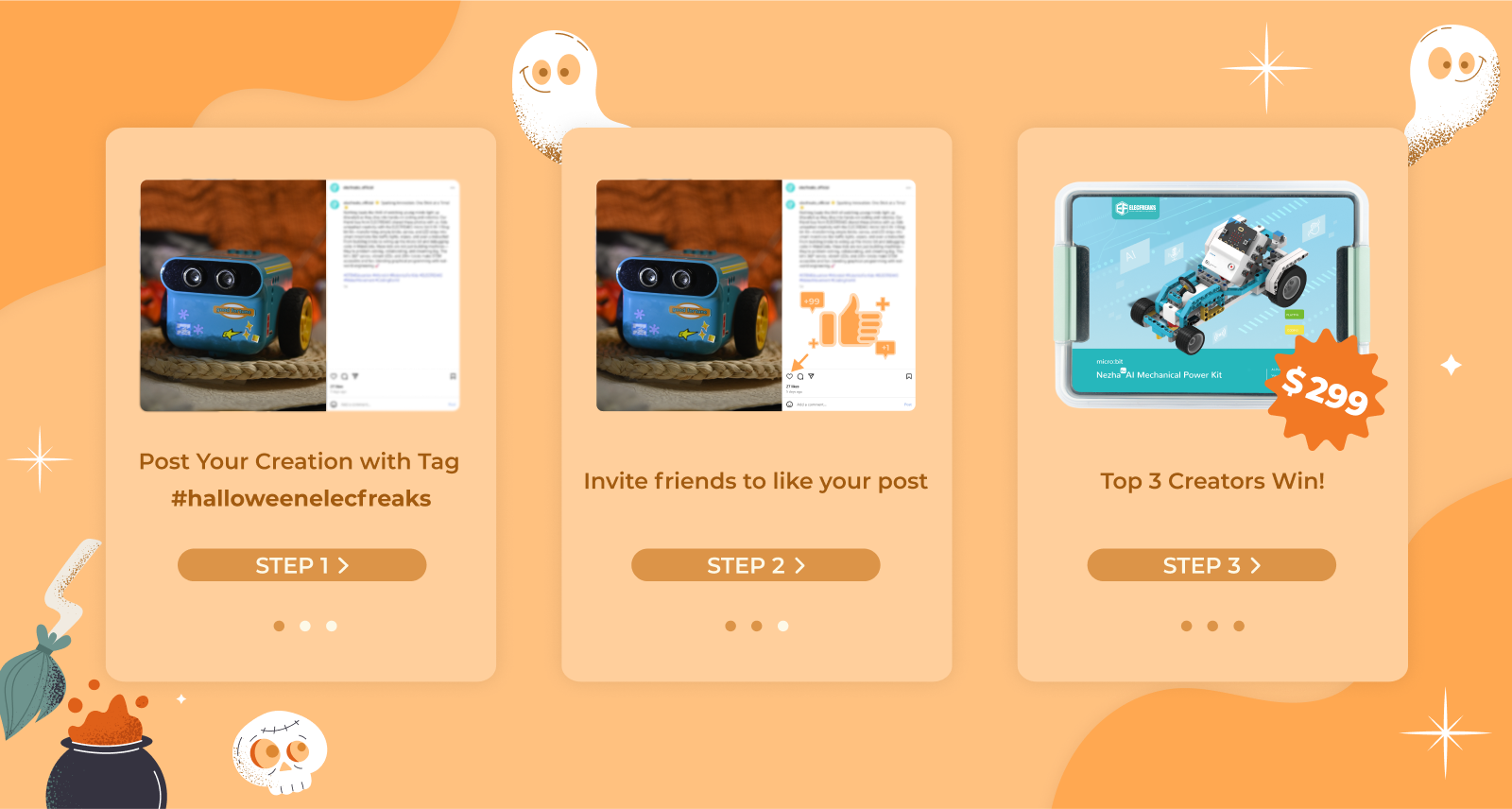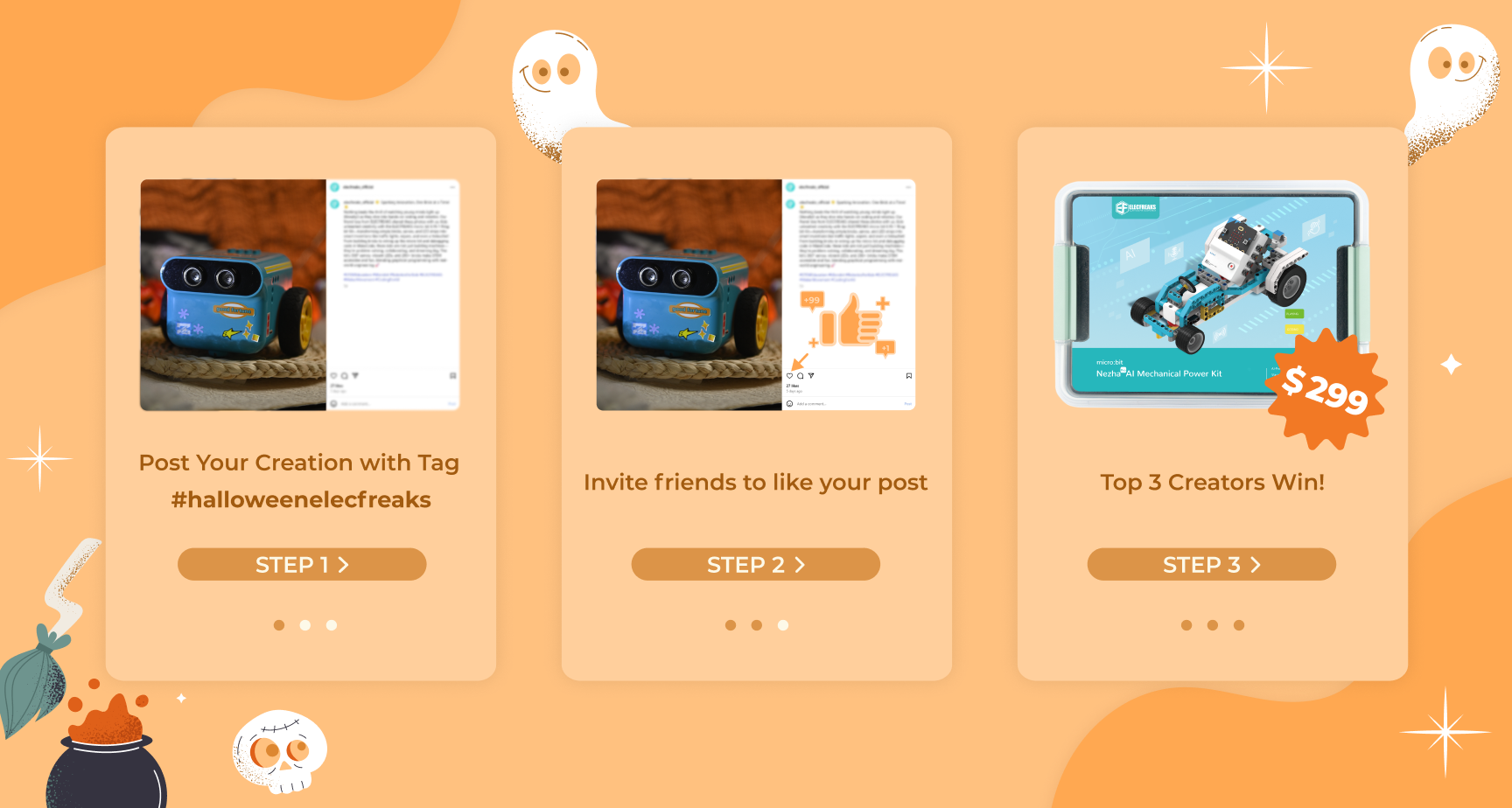 No purchase is necessary for our Social Media Giveaway! Just follow the instructions on our social media post to enter. For the Halloween Project Showcase, you'll be sharing a project you've built. While there's no entry fee, most participants naturally use one of our kits to create and share their awesome work.