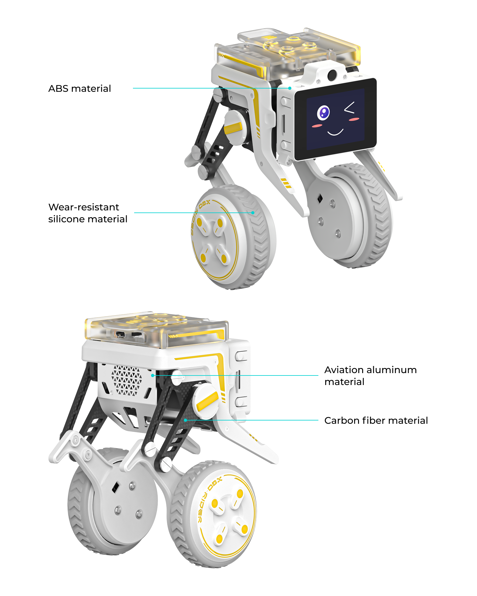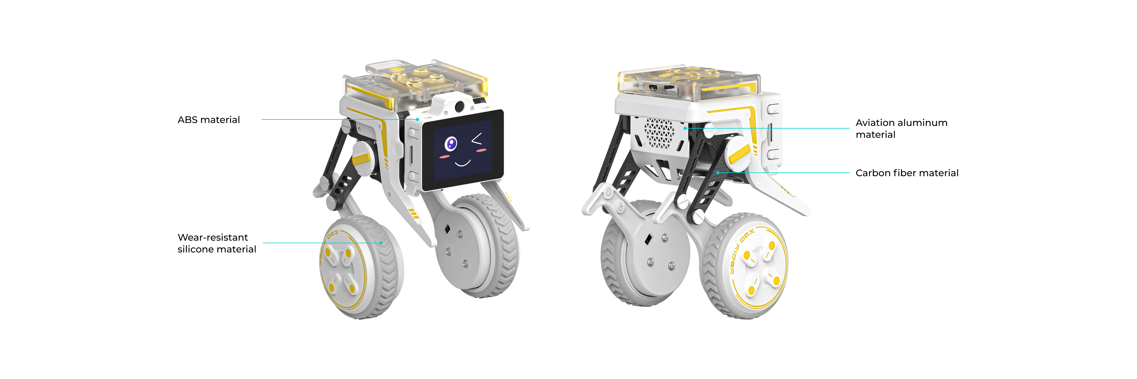 CM4 XGO-Rider is designed with a robust ABS body, providing exceptional durability and impact resistance. Its bracket is made from lightweight carbon fiber, ensuring strength without added weight. Additionally, the rear cover is constructed from aviation aluminum, offering excellent resistance to wear, scratches, and corrosion.