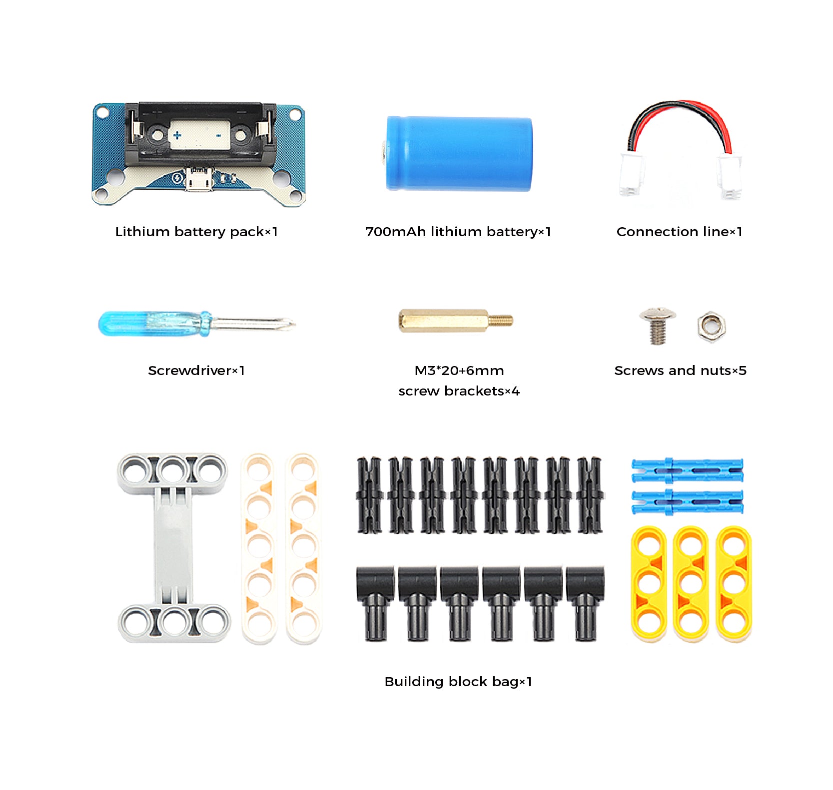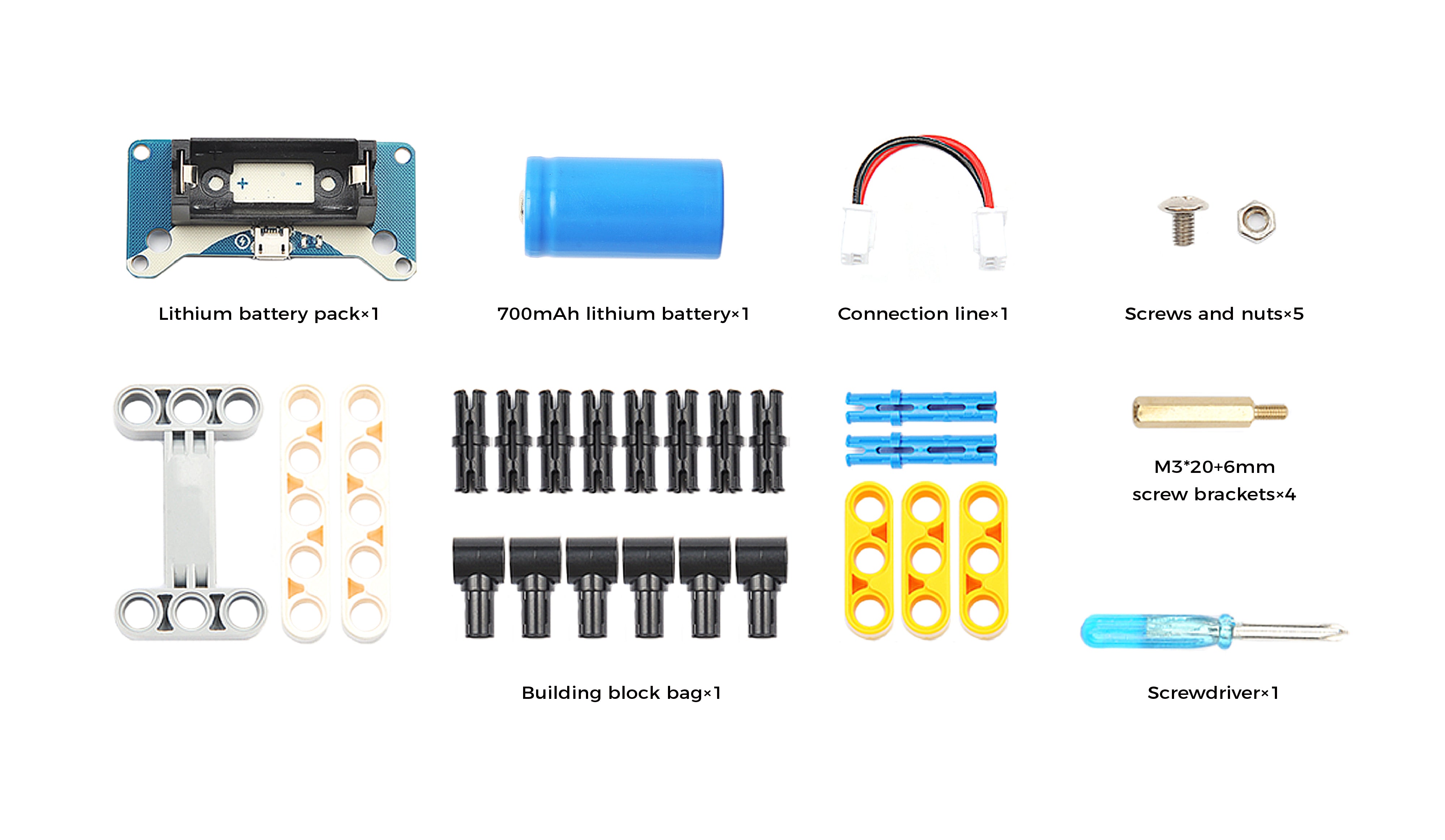 The Lithium battery pack for Smart Cutebot Car is a rechargeable battery in 3.6v, it is able to give a stable and powerful power source. The onboard power management system makes it much easier for charging. We are customized 4 holes that are compatible to lego bricks, which makes it possible to create more projects with Lego.
