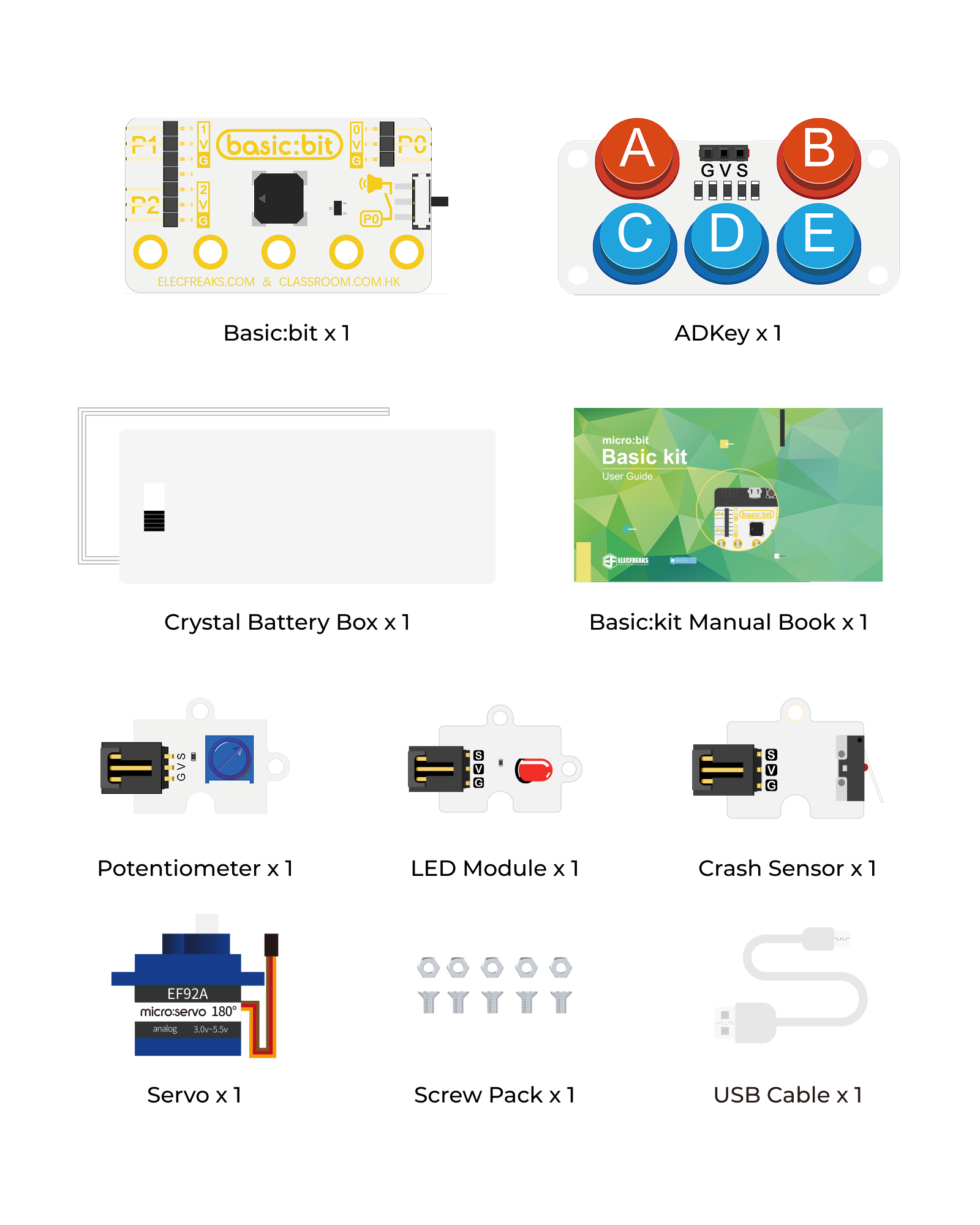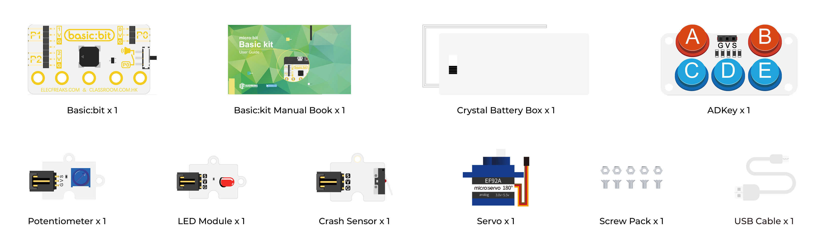 The ELECFREAKS micro:bit basic kit is the perfect entry point into the exciting world of micro:bit! We've carefully selected 5 of the most common electric sensors, designed for easy connection to your micro:bit via the basic:bit. This kit empowers students to quickly build their own engaging micro:bit projects through hands-on experimentation. These electric bricks can be driven directly by MakeCode's default blocks, with no need to add any extra packages, making it incredibly beginner-friendly. It's a fantastic way for students to understand the usage of electric bricks from first principles, fostering a deeper understanding of electronics and programming concepts.