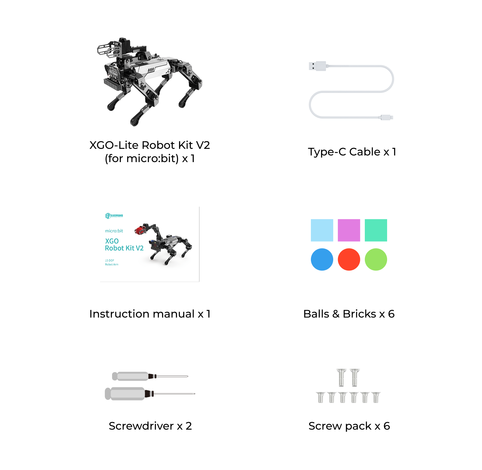 ELECFREAKS XGO Robot Kit V2 for micro:bit は、ティーンエイジャー向けの人工知能教育のために特別に設計されたバイオニック四足ロボット犬キットです。 micro:bit と組み合わせて MakeCode 上でグラフィカル プログラミングを実行できるため、10 代の若者がプログラミングを学ぶのに適しています。 15 DOF を備え、本物のペットの犬のように行動したり対話したりできるほか、ロボット アームでつまんだり運んだりすることができるため、子供たちは遊びながら機械学、電子機器、プログラミング、AI を学び、社会への準備を整えることができます。 AIの未来の生活。