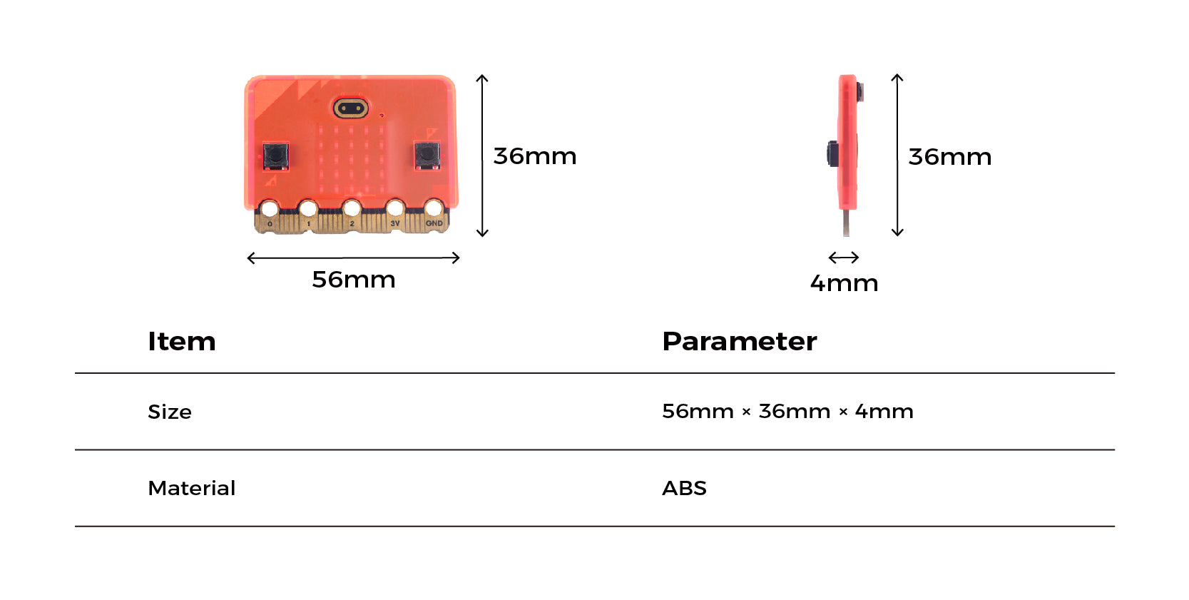 Durable, easy‑assemble red protective case for the BBC micro:bit that shields the board while keeping buttons, LED matrix, ports, and edge connector fully accessible—ideal for classroom color coding.