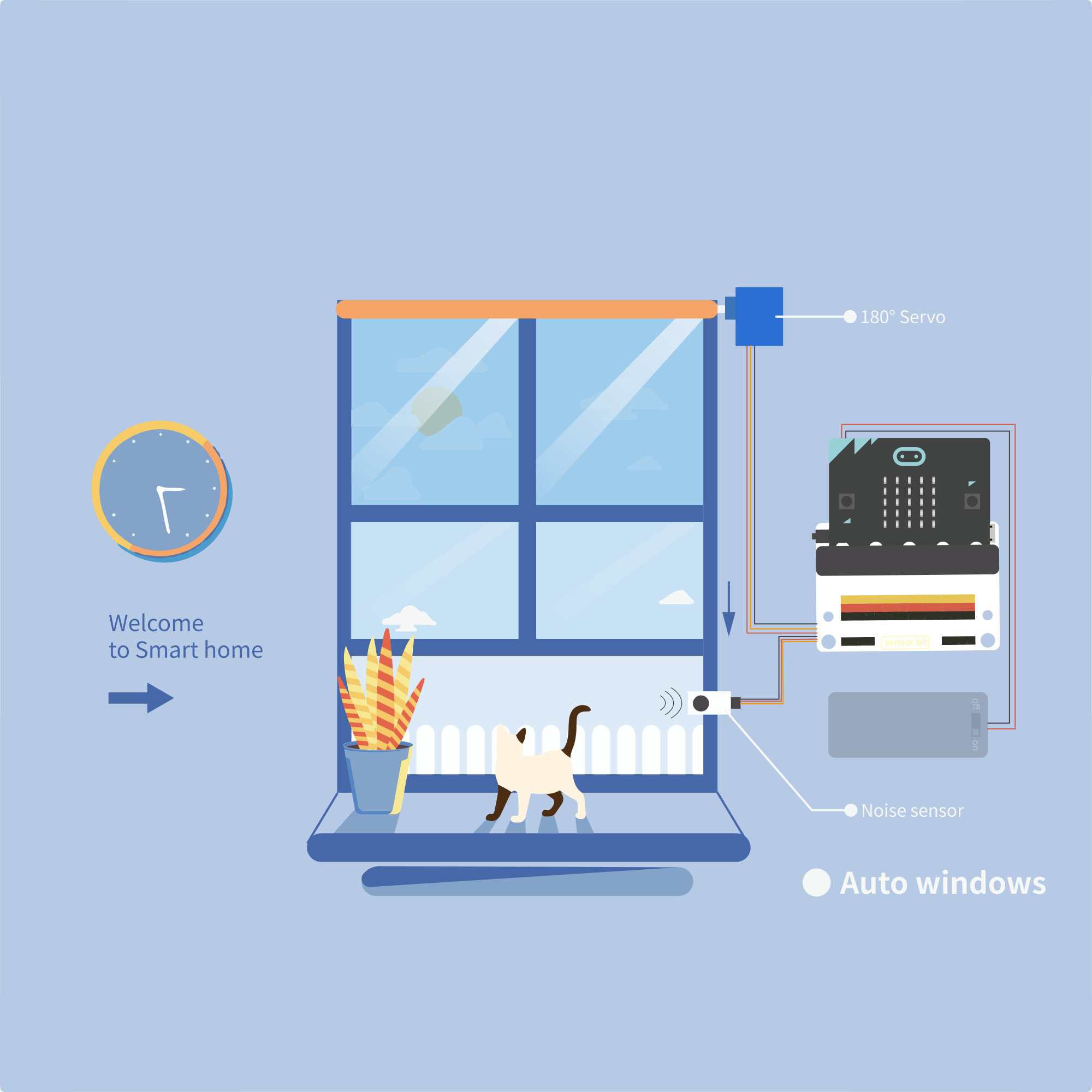 Smart home Kit is a product about smart home projects based on micro:bitwhich is developed by ELECFREAK. We selected executed components commonly used at home as the TMP36 temperature sensor, sound sensor, crash sensor, servo, and motor. You can build scenes like windowsill, wardrobe, and fish tank, create yourself a smart sweet home and program to intelligently drive them using micro:bit. The smart home is what makes life more practical and playing with it is what makes life more interesting.